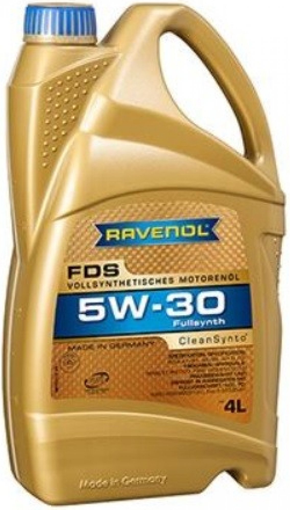 Ravenol FDS 5W-30, 4LPlně syntetický motorový olej s nízkým třením na bázi PAO (Polyalphaolefin), zejména se speciální USVO® a osvědčenou technologií CleanSynto® pro benzinové a dieselové motory osobních automobilů s nebo bez turbodmychadla a přímého vstřikování.