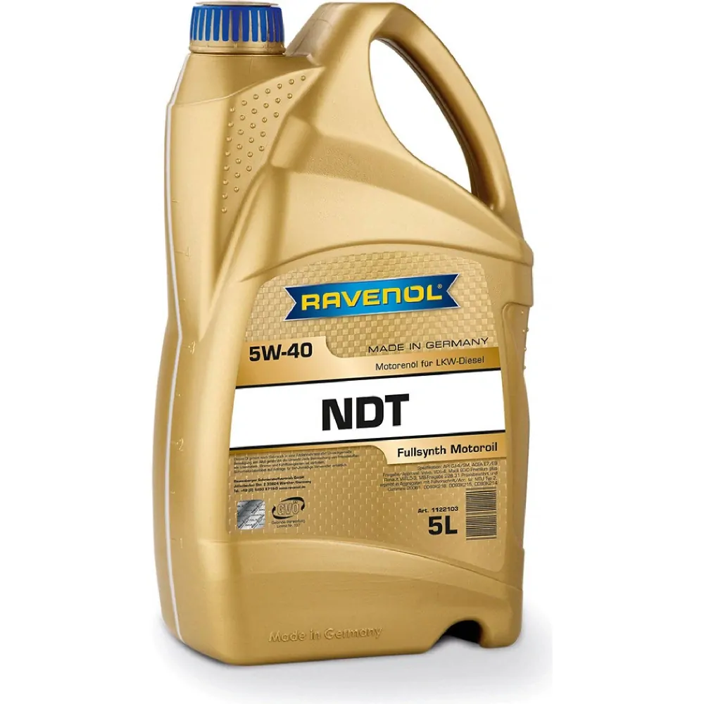 RAVENOL NDT NORD DUTY TRUCK 5W-40 je plně syntetický vícestupňový motorový olej pro užitková vozidla, pick-upy a terénní vozidla. Může být použit v nových motorech optimalizovaných pro systémy úpravy výfukových plynů. Snižuje tření, snižuje spotřebu paliva a poskytuje delší intervaly výměny u přeplňovaných motorů. Díky účinným látkám udržuje vynikající střihovou odolnost, zlepšuje výkon motoru, spolehlivost a čistotu.