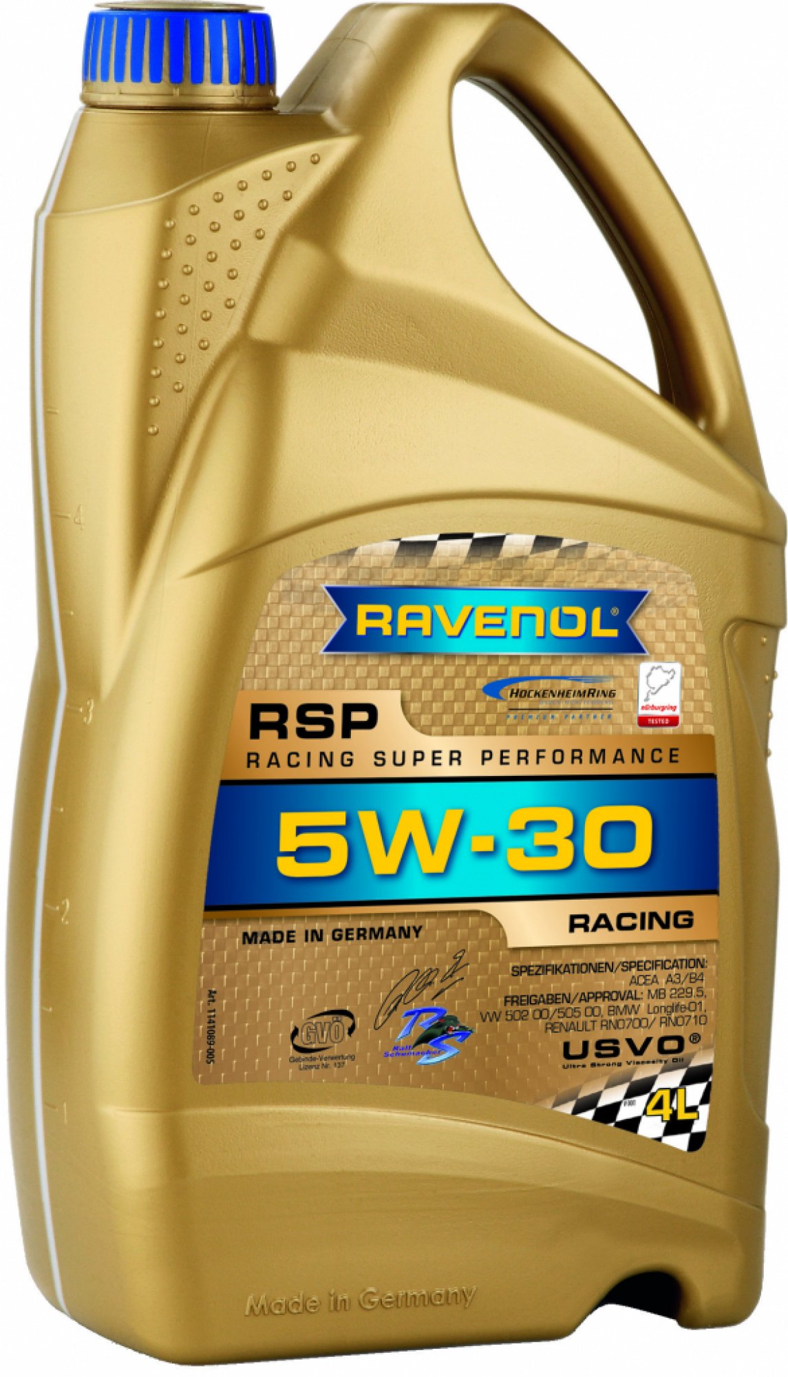 Vzhledem k vysokému indexu viskozity, dobré střihové stabilitě a vysoce účinnému speciálnímu přídavnému doplňku s wolframem je RAVENOL RSP 5W-30 vhodný také pro extrémně sportovní jízdní styly.
