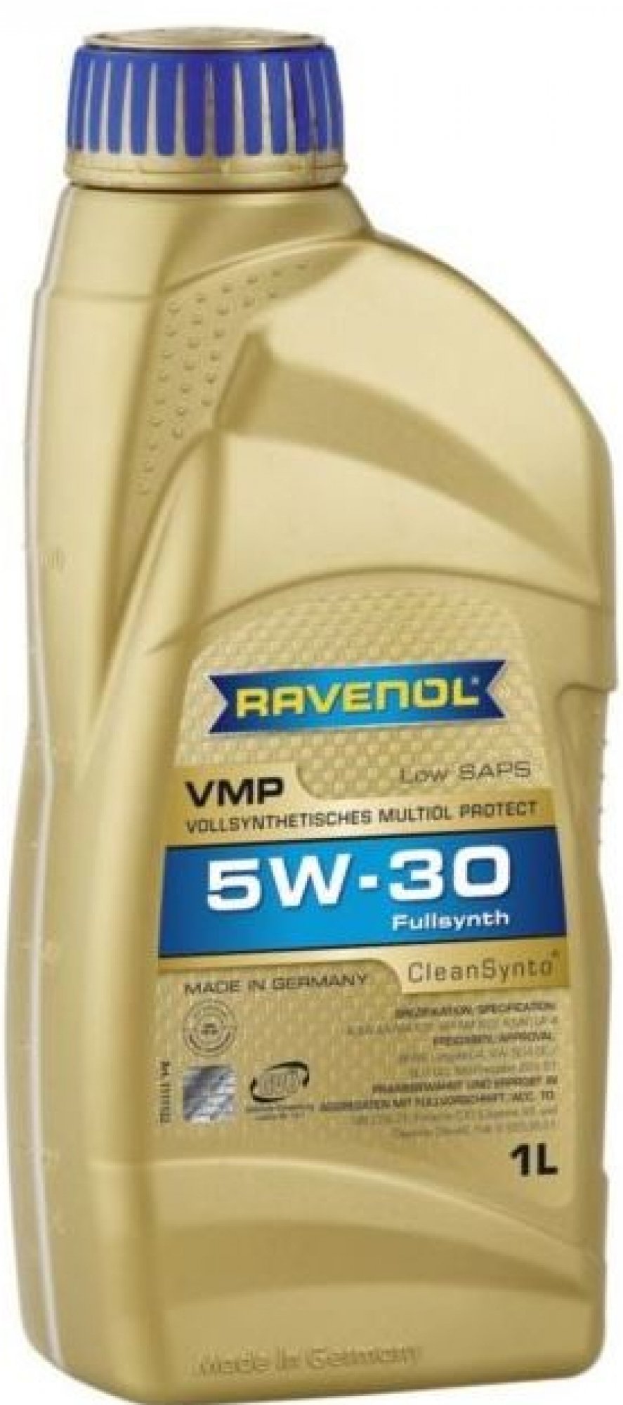 Vhodný pro delší intervaly výměny oleje, doporučené výrobcem. RAVENOL VMP 5W-30 je založen na látkách s nízkým obsahem popela.